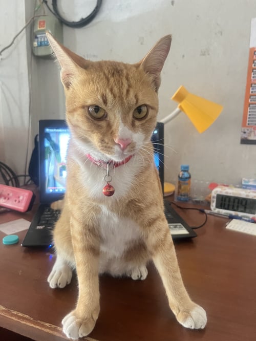 รอยตำหนิ: หางกวักน้องใส่ปลอกคอสีแดง