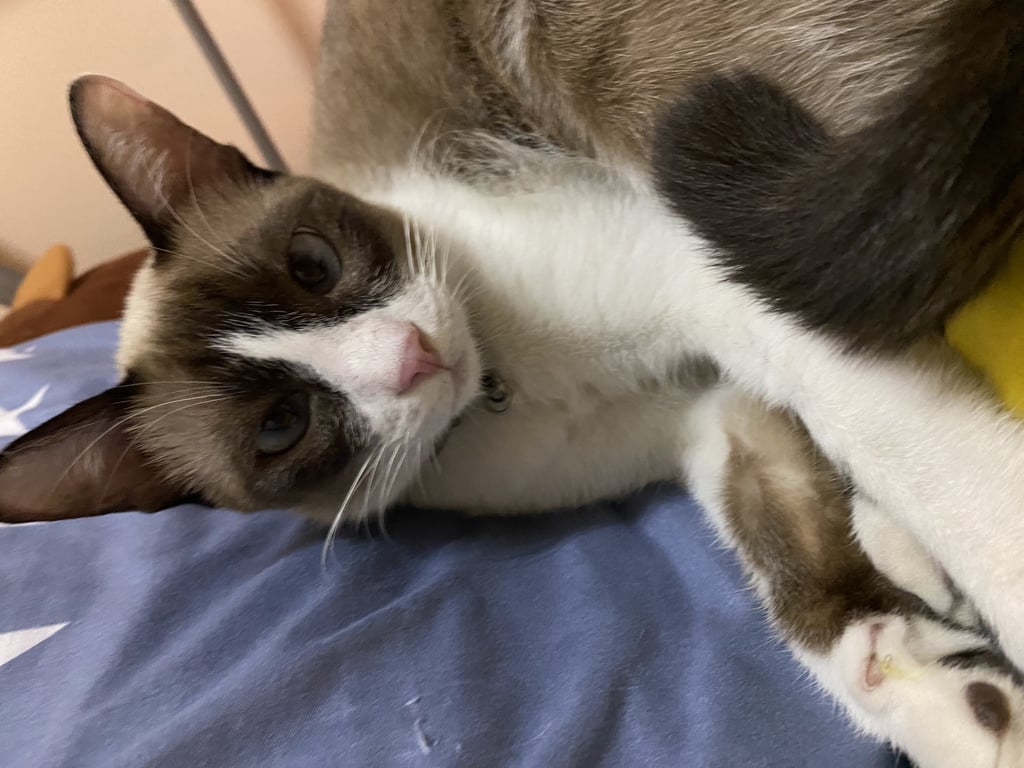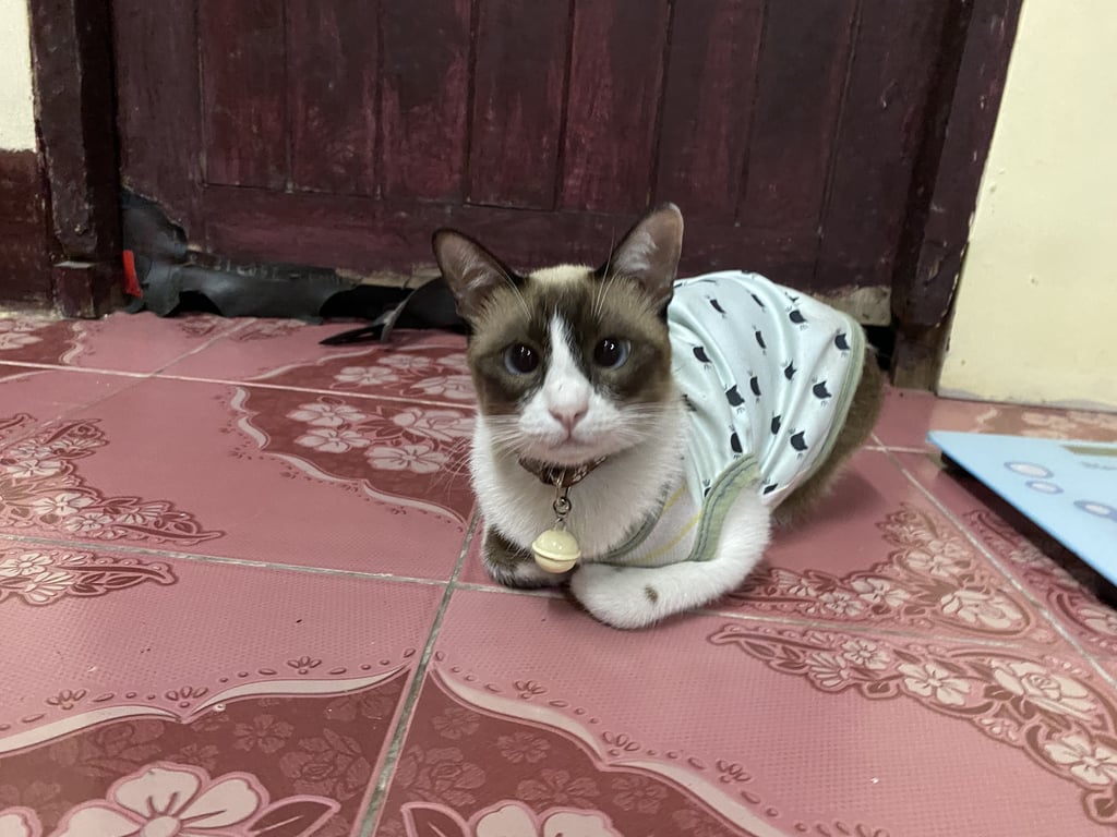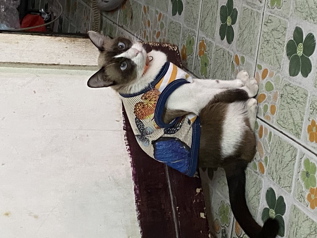 รอยตำหนิ: ตาสีฟ้า จะตาเหล่นิดๆ ปลอกคอสีเทา จทูกชมพู เรียกชีโร่ได้เลยเขาจำได้ ถึงจะขี้ตกใจและระแวง แต่เป็ตแมวเชื่องใจดี3 ปี