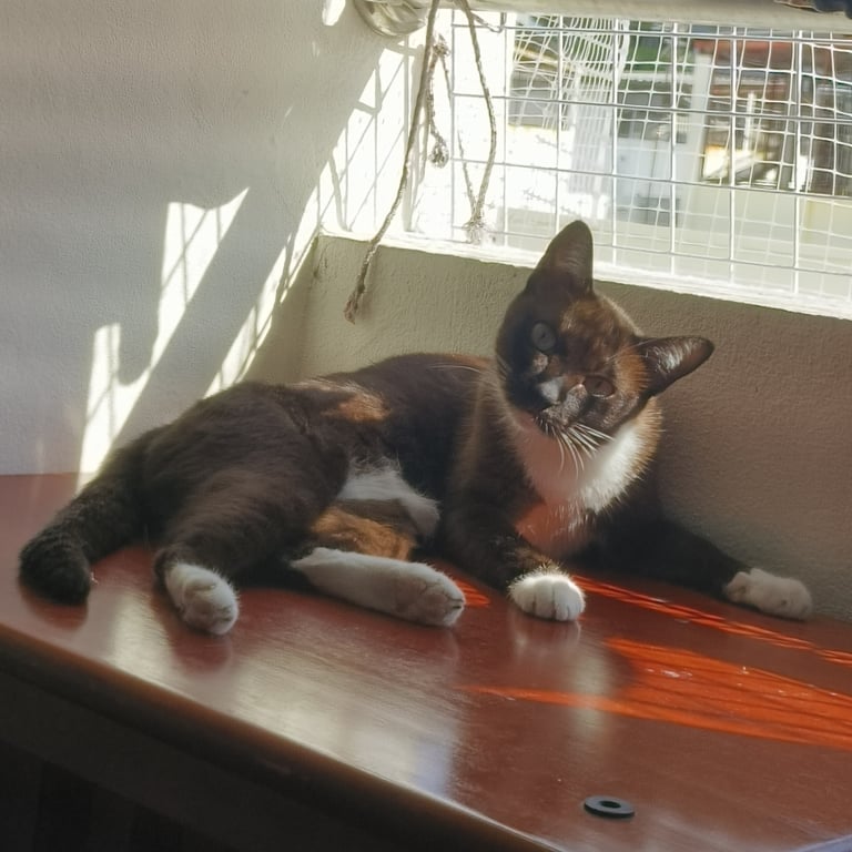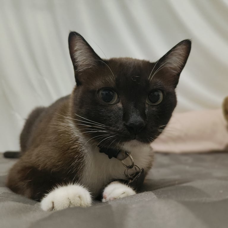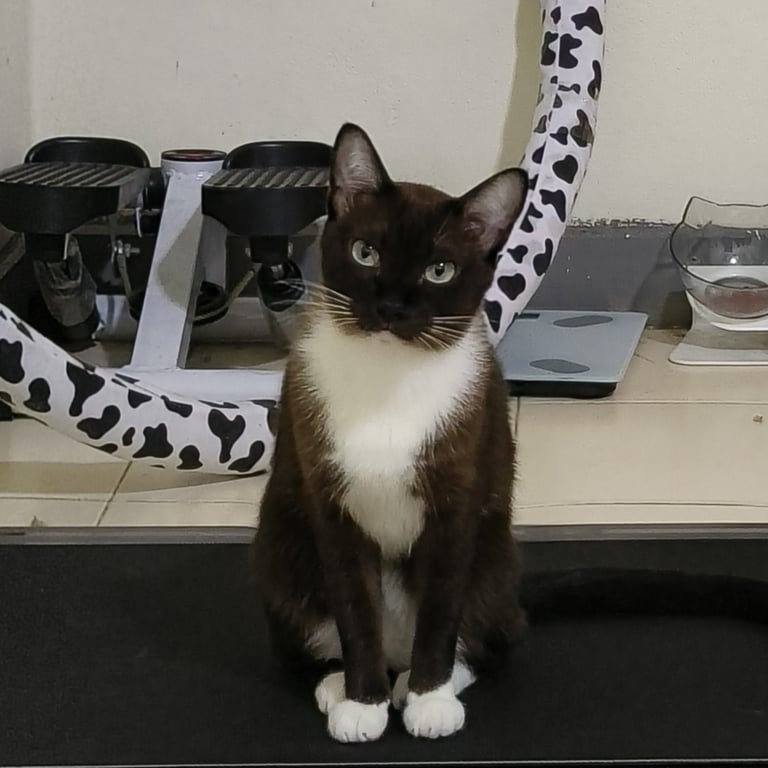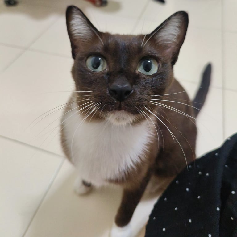 รอยตำหนิ: หางยาว ถุงเท้าสีขาวทั้ง 4 ข้าง ตัวเล็กผอมลำตัวยาวขี้กลัวมาก ชอบแอบเวลาได้ยินเสียงคนอื่นๆเข้ามาในห้องหรือเดินผ่านหน้าห้อง แต่จำชื่อตัวเองได้ เวลาเรียกชื่อจะหยุดและขานรับตลอด