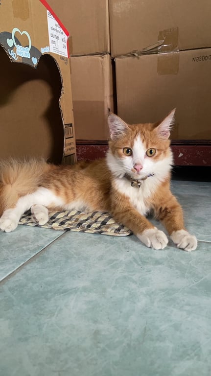 รอยตำหนิ: หางฟู มีสีส้มข้างปากและจมูก ถุงเท้าสีขาวน้องกลัวคนแปลกหน้า เรียบร้อยมาก
