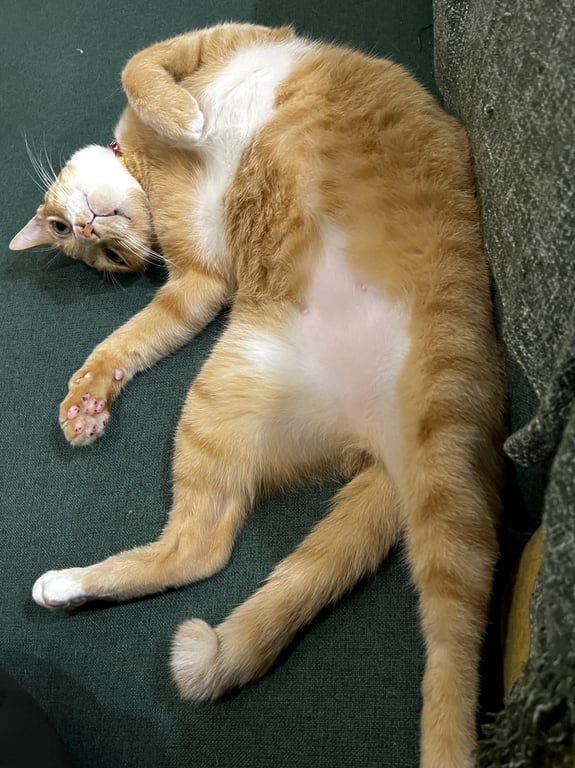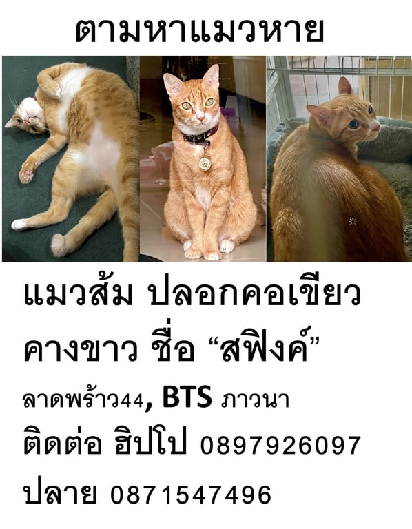 รอยตำหนิ: หางกวักปลายขาว และใส่ถุงเท้าด้านหลังขี้กลัวเสียงดัง แต่ใจกล้ากับแมวอื่นๆ
