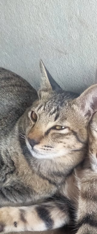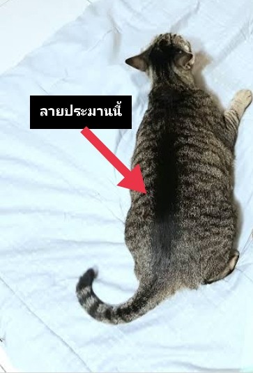 สี: เป็นแมวลายสลิดสีค่อนข้างดำ และข้างหลังจะมีเส้นดำยา