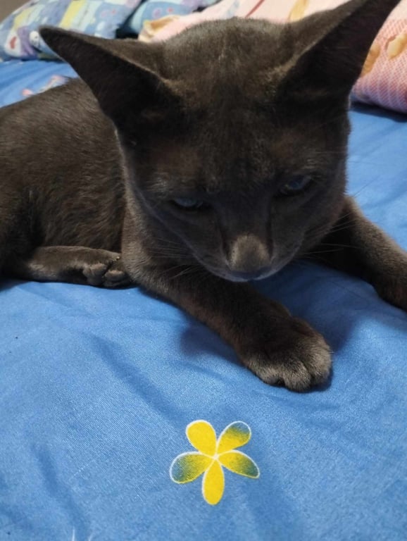 รอยตำหนิ: ปลายหางหยัก มีปอกคอสลายกาตูนสีเหลืองไม่กลัวคนขี้อ้อน