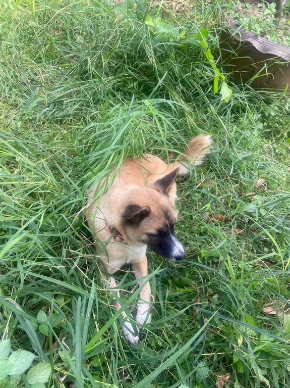 รอยตำหนิ: ปลอกคอสีแดง มีลายสีส้ม น้องมีขนตรงหูสีดำ ขนตรงท้องสีขาวขี้เล่น ใจดี ไม่กัดไม่เห่า