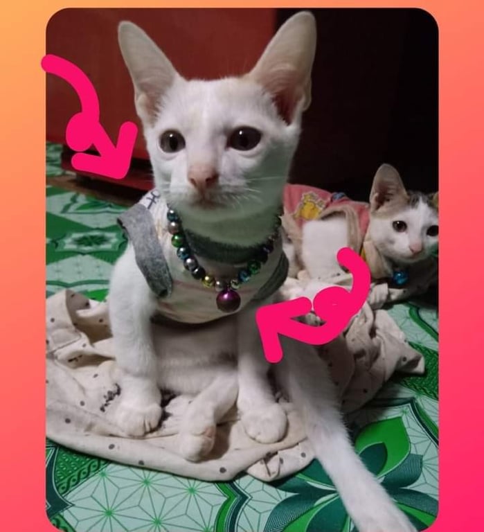 รอยตำหนิ: หางหวักเข้าไม่หางยาว แต้มสีเหลืองส้มตรงหูและหางและบริเวณลำตัว👉ประกาศตามหาแมวหาย🐱❗❗ น้องชื่อไวท์เร้น เพศผู้ อายุประมาณ 3-4เดือน ขาวมณี ตาสีฟ้าทั้งสองข้าง หางหวัก สีขาวแต้มเหลืองส้มบริเวณหางและลำตัว น้องมีกระดิ่งที่คอแบบลูกปัดหลายๆสีและใส่ชุดแมวสีขาวขอบสีเทา น้องหายไปช่วงบ่ายของวันที่18ตุลาคม 2565พิกัด เพชรหึงษ์26 พระประแดง สมุทรปราการ กลัวน้องอาจจะติดรถไป หากท่านใดพบเจอน้องหรืออุ้มน้องไปโปรดนำมาคืนเจ้าของนะคะ เจ้าของทุกข์ใจมาก อยากได้น้องคืนจริงๆ โปรดติดต่อได้ที่ 0886132754 , 0803191856 (มีรางวัลให้)👉วันที่น้องหายไปน้องสวมใส่ชุดนี้สีขาวขอบเทาค่ะกับใส่ส้อยคอกระดิ่งแบบนี้ค่ะ น้องเป็นเพศผู้ อายุประมาณ 3-4เดือน นิสัยขี้อ้อนไม่หวงตัวค่ะ น้องชื่อไวท์เร้น