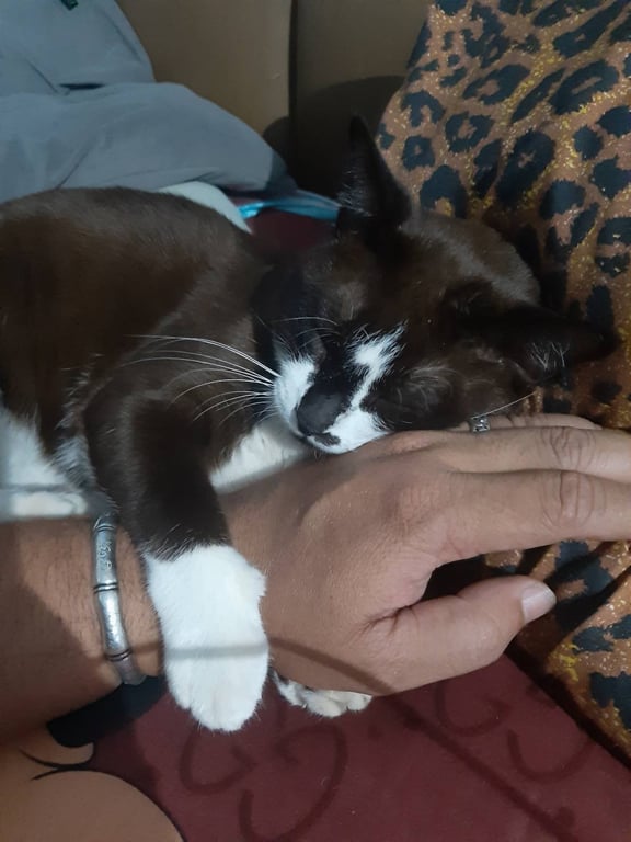 รอยตำหนิ: มีแต้มขาวที่จมูกมีปลอกคอสีเขียว