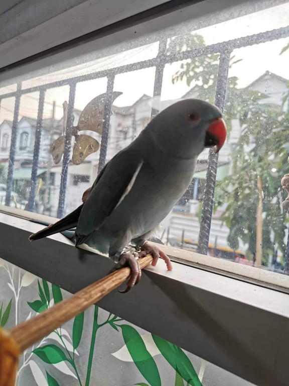 รอยตำหนิ: เล็บกุด มีเชือกผูกที่ขา2ข้าง มีหวงสีน้ำเงินที่ข้อเท้า1 ปี น้อง ไม่เคยบินออกข้างนอก พูดชื่อตัวเองได้