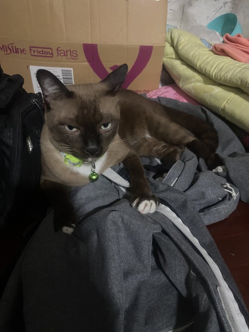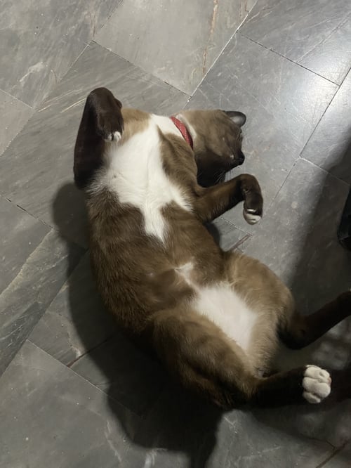 รอยตำหนิ: มีรอยเเผลเป็นที่หางตาข้างขวา เหมือนรอยฉีก ปลอกคอที่ใส่ล่าสุดเป็นสีเขียวอายุประมาณ 2-3ปี