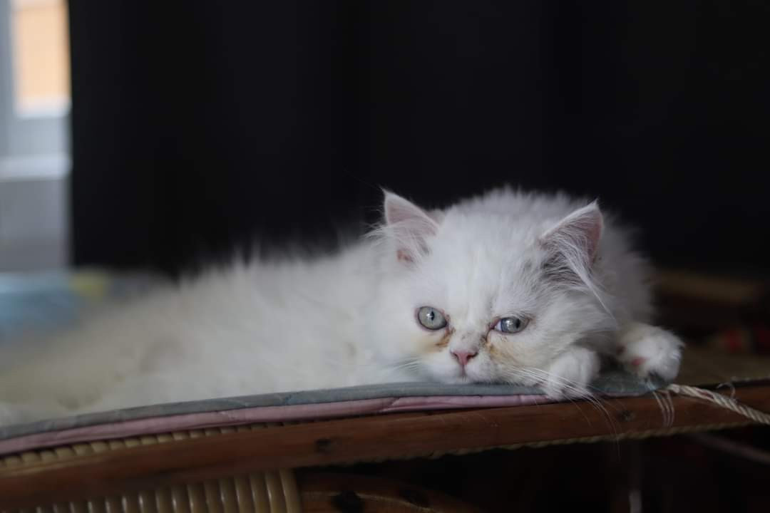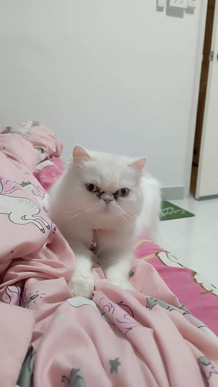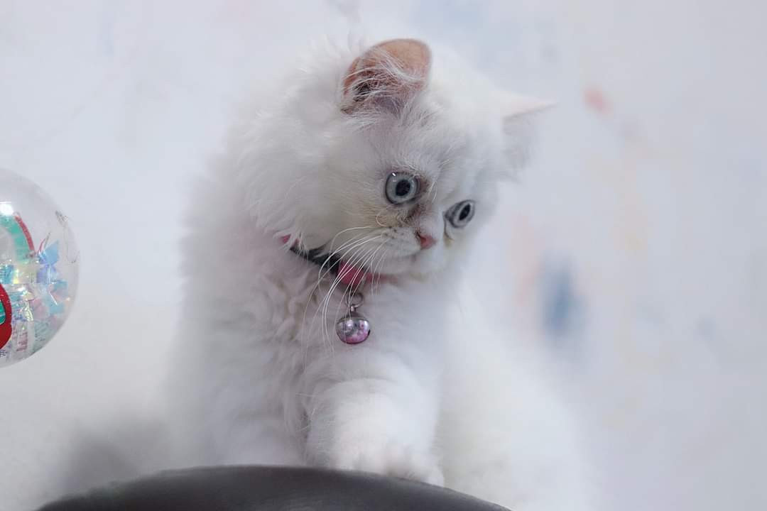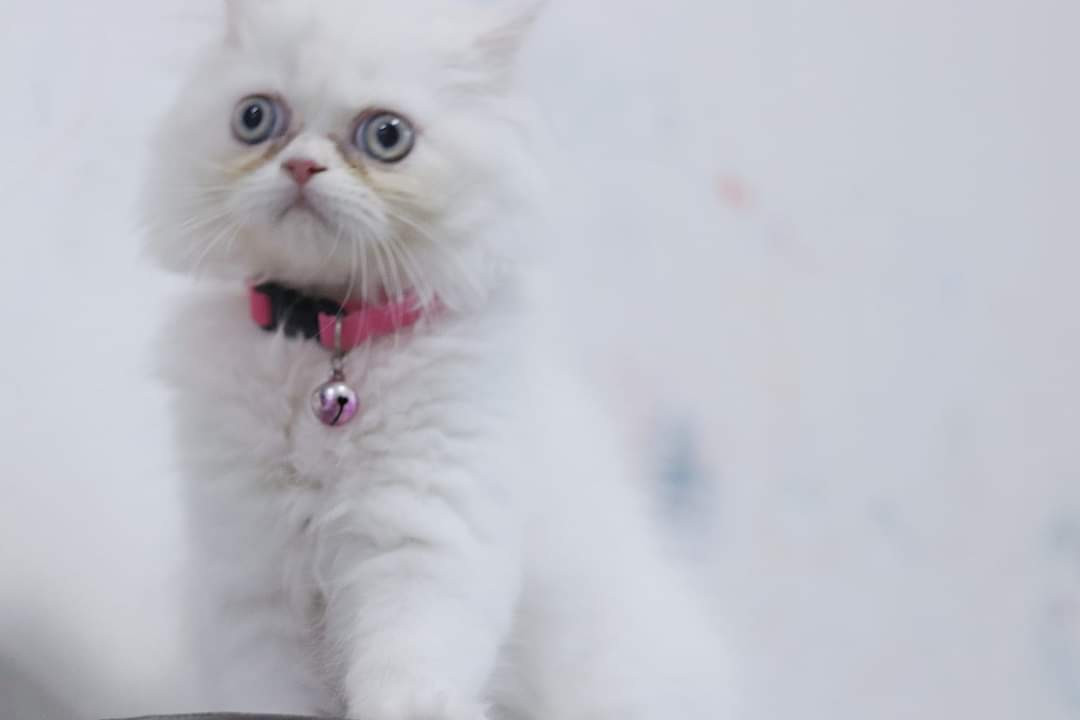 รอยตำหนิ: ตากลมสีฟ้าเปอร์เซียหน้าตุ๊กตา ตาสีฟ้า ปลอกคอสีชมพู