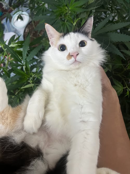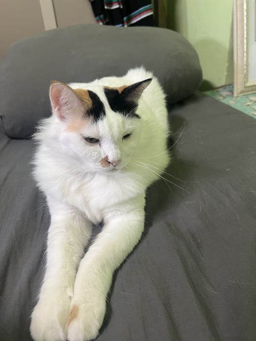 รอยตำหนิ: มีปานรูปหัวใจตรงเท้า หูมีเอกลักษณ์มีสีดำน้ำตาล ตัวขาวล้วนหาง3สีขี้อ้อนน่ารัก เข้ากับคนง่าย ชอบให้เกา ชอบนอนกับคนติดคน บ่นเก่ง
