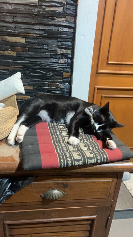 รอยตำหนิ: มีสีดำเหมือนหนวดคนน้องเป็นมิตรกับคน