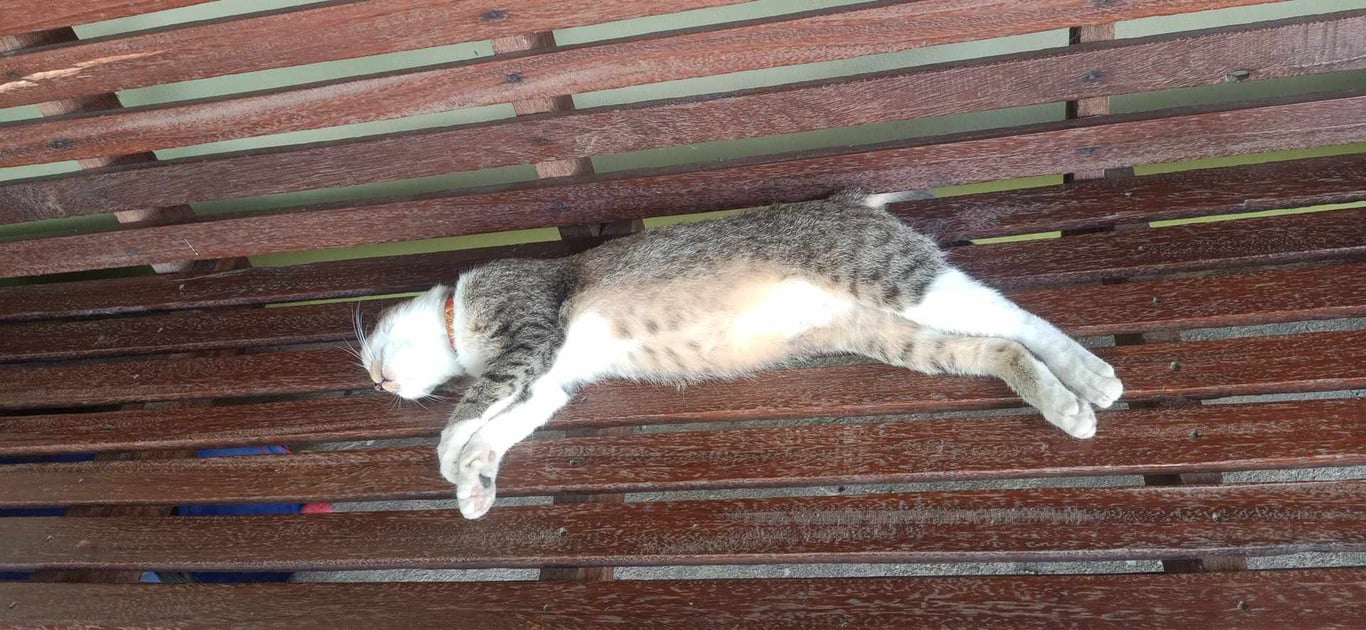รอยตำหนิ: หูเหมือนกระต่าย มีปลอกคอกระดิ่งสีแดง ท้องขาวลายเหมือนเนื้อปลาน้องจะชอบมานั่งรอของกินเวลาเห็น พูดเก่ง อุ้มได้แต่ไม่นานเพราะขี้รำคาญ