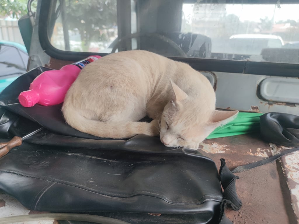 รอยตำหนิ: หางงอเพียงเล็กน้อยพอสังเกตได้้ขี้อ้อน สีขาวครีมอ่อนๆ(เหมือนแมวคลุกฝุ่น) มีระแวงคนบ้างแต่ถ้าเข้าใกล้แบบไม่วิ่งหรือเร่งเดินไปหา จะให้จับได้ครับ