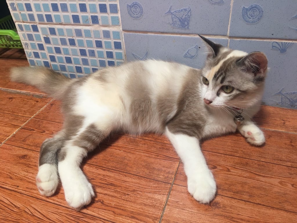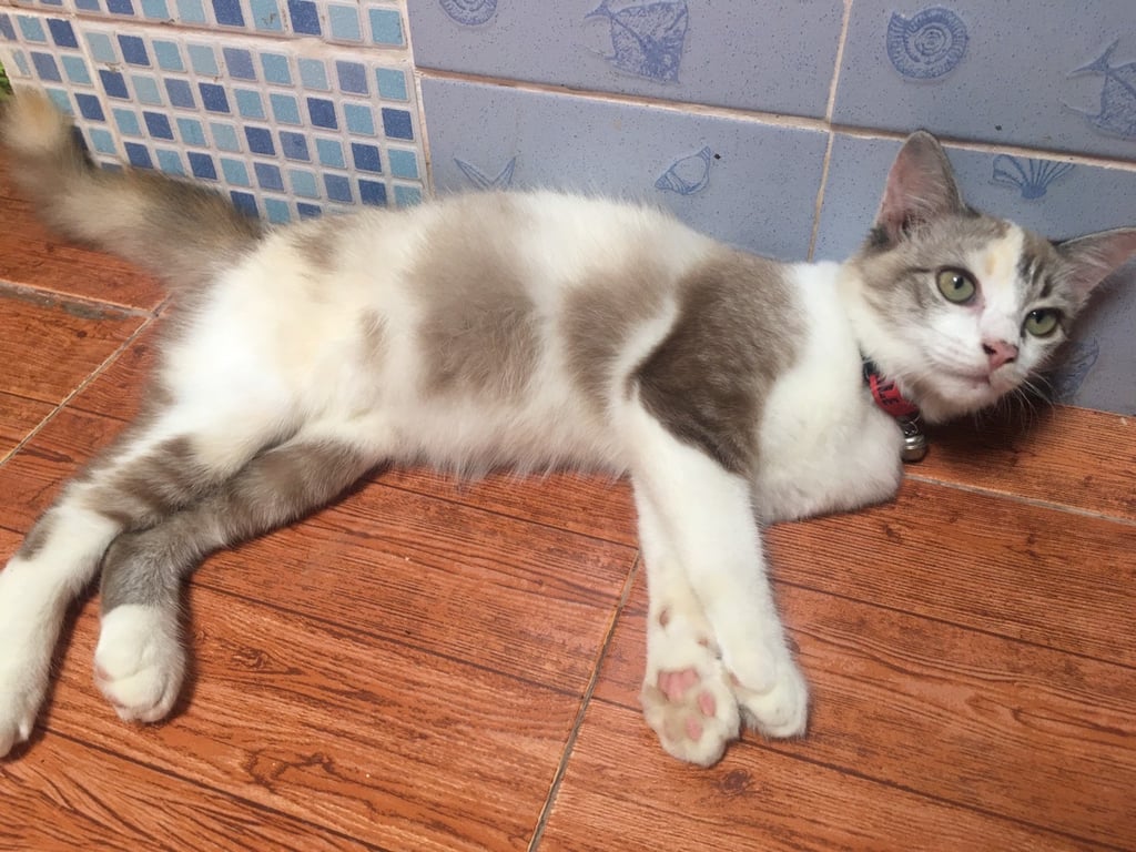 รอยตำหนิ: น้ำหนักประมาน 5 Kg ขอบตาดำ1 ข้างใส่ปลอกคอสีแดง ไม่ค่อยมีเสียงร้อง