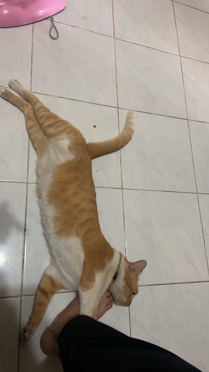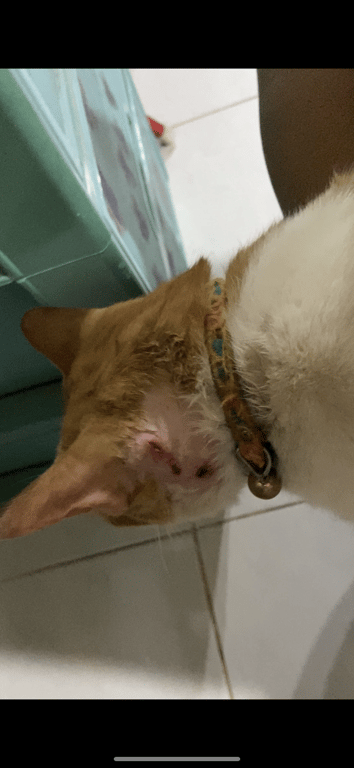 รอยตำหนิ: หูข้างขวามีรอยแผล หางตรง ตรงคอขนสีขาวกินเก่ง ร้องดัง ไม่ค่อยให้ใครอุ้มง่ายๆ คนแปลกหน้ามักจะวิ่งหนี น้องกินเก่งมากค่ะ