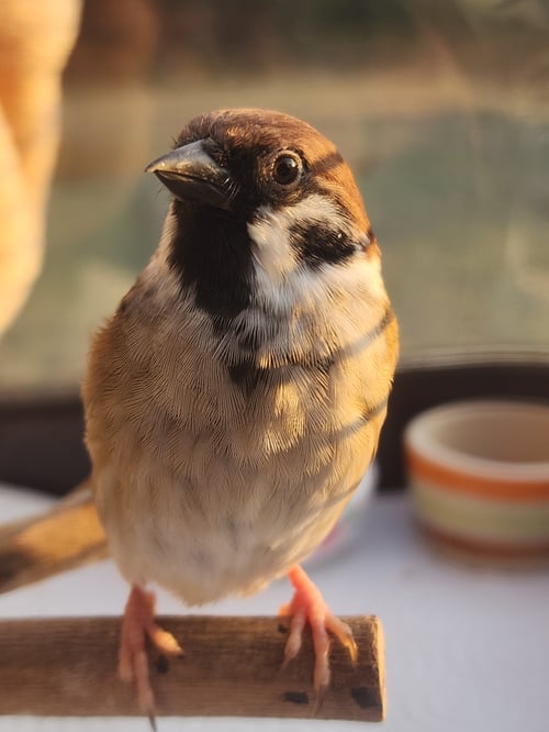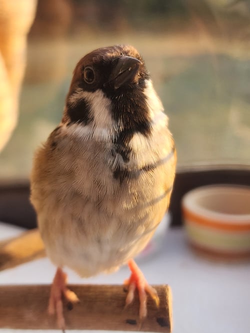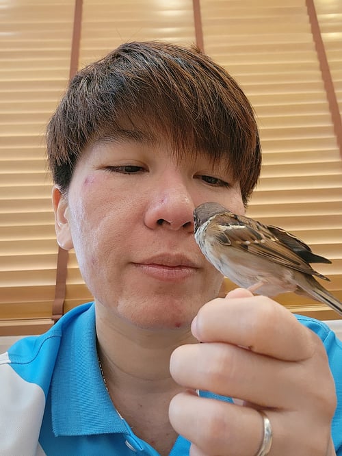รอยตำหนิ: ปีกขวาแนบตัวไม่สนิท เรียกชื่อจะขานรับ ชอบบินเกาะคนชอบร้องเพลง อาบน้ำ ติดคน เกาะไม่เก่ง