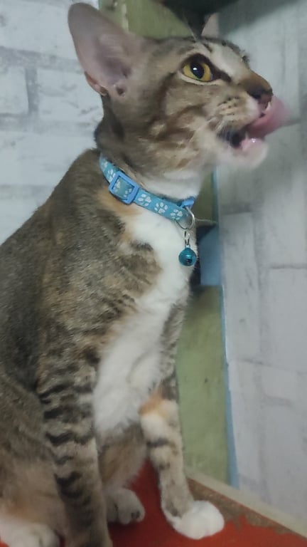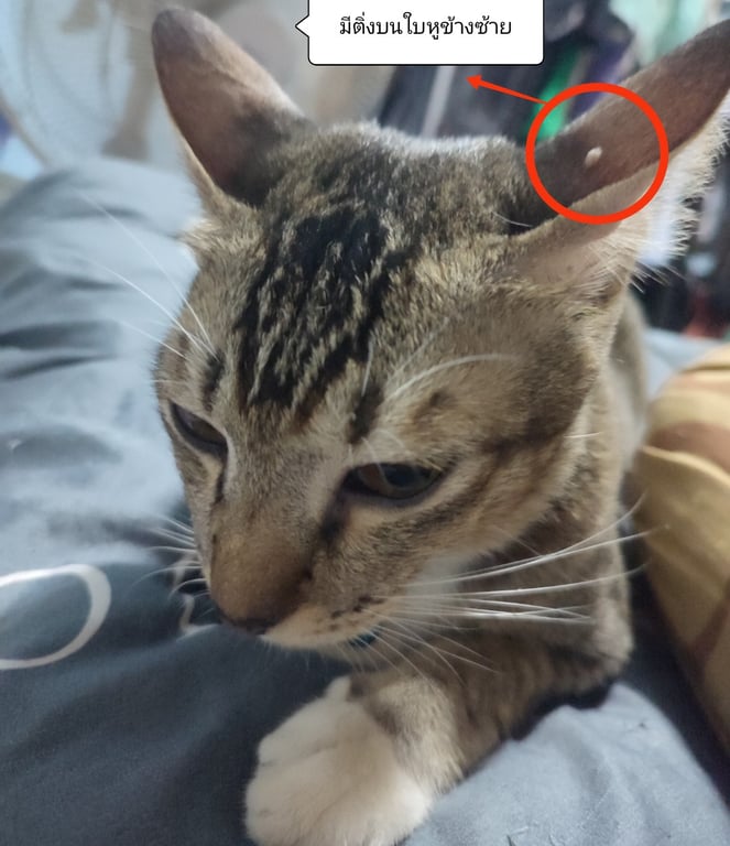 รอยตำหนิ: หางสั้นป้อมๆ / มีพุงอ้วนๆกลมๆ หน้าเล็กๆ / มีติ่งบนใบหูข้างซ้าย / ปลอกคอสีฟ้าขี้กลัว,ไม่ชอบให้อุ้ม,ขี้อ้อน