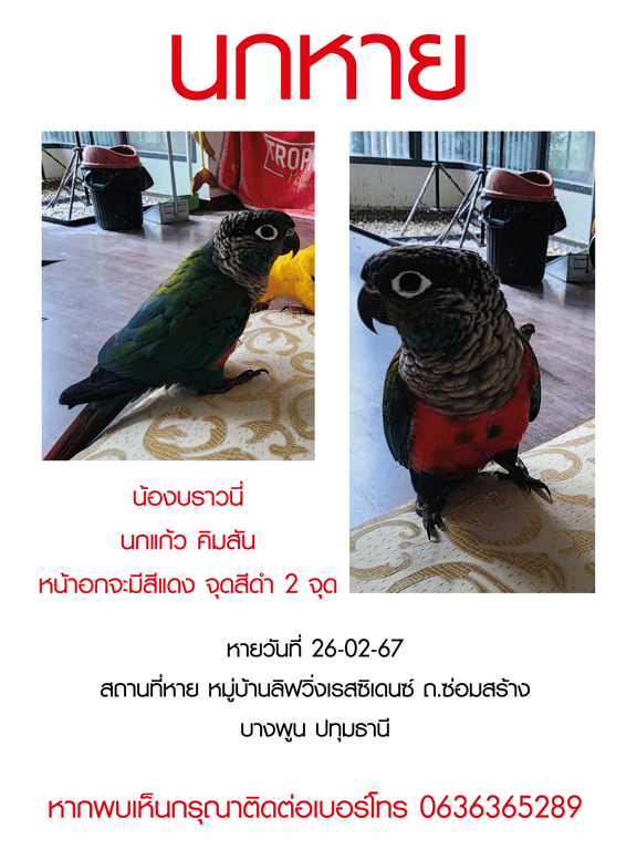 สี: เขียวมีสีแดงที่หน้าอก