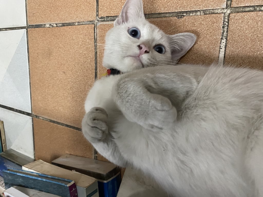 รอยตำหนิ: ตาสีฟ้า ตัวไม่ใหญ่มาก ปลอกคอสีแดง