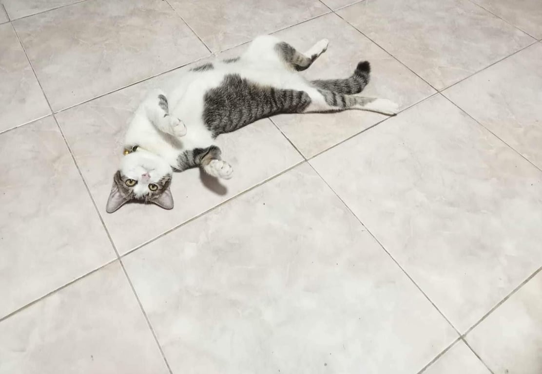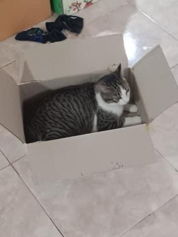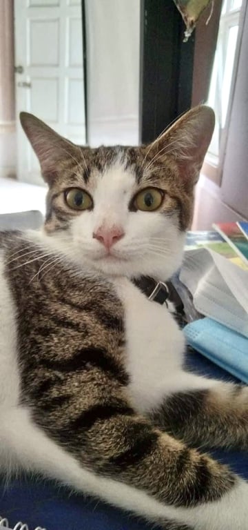 รอยตำหนิ: ปลายที่หางหัก ลายชัดเจนตรงขาขวาข้างหน้า ไม่มีปลอกคอน้องนิสัยค่อนข้างขี้กลัวค่ะ อาจจะมีขู่ให้คนแปลกหน้า