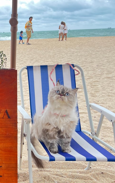 สี: ตัวสีขาว หน้าลาย ขาลาย ตาสีฟ้า