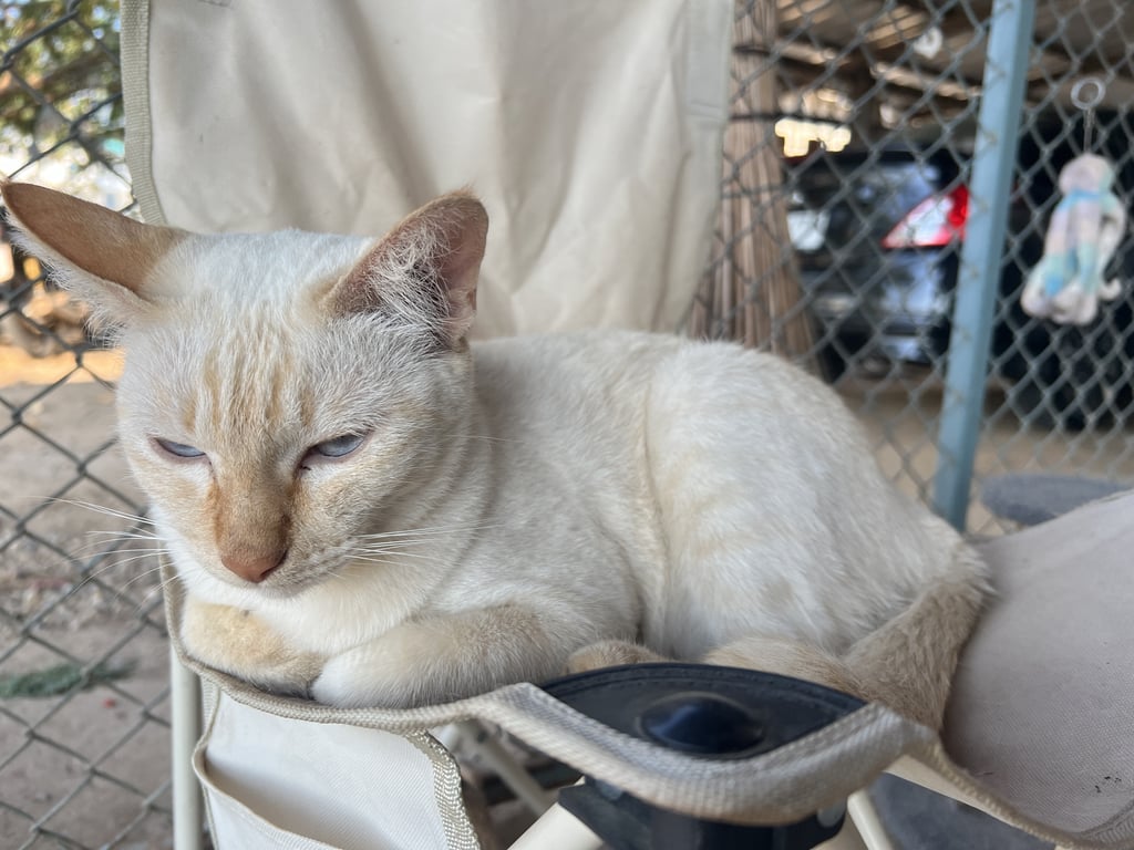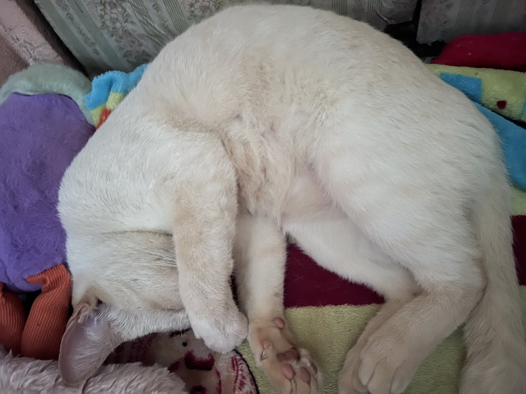 รอยตำหนิ: สีขาวทั้งตัว หางจะสีครีมๆ หางไม่ยาวมาก ขนปุย