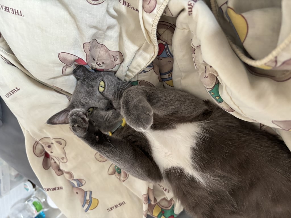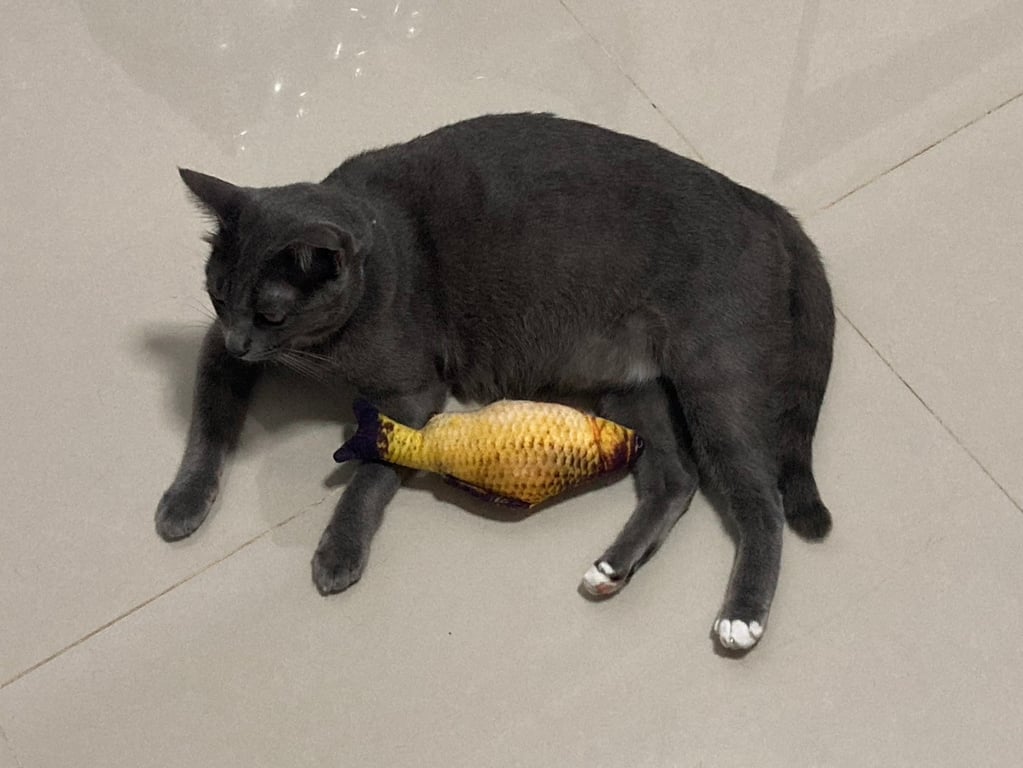 กลัวคน พลังเยอะ อ้อนเฉพาะเวลากิน ชอบเล่นแรง แสดงความรักด้วยการกัด ใส่ปลอกคอสีฟ้ามีป้ายชื่อตลอดเวลา