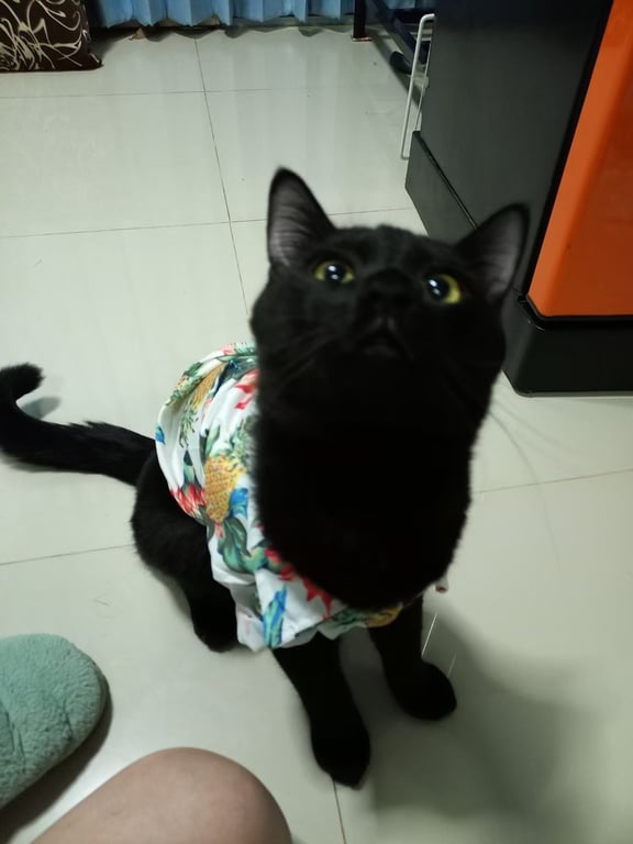 ไม่ร้อง ไม่ดุ เชื่อง ขี้กลัว ไม่เคยออกนอกบ้านเลย ไม่มีปลอกคอ ไม่เคยกัด เคยแต่โดนแมวที่เลี้ยงด้วยกันกัด