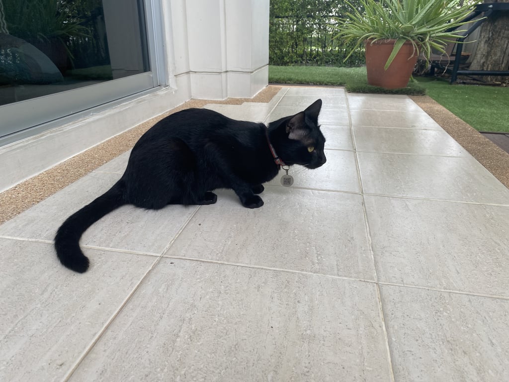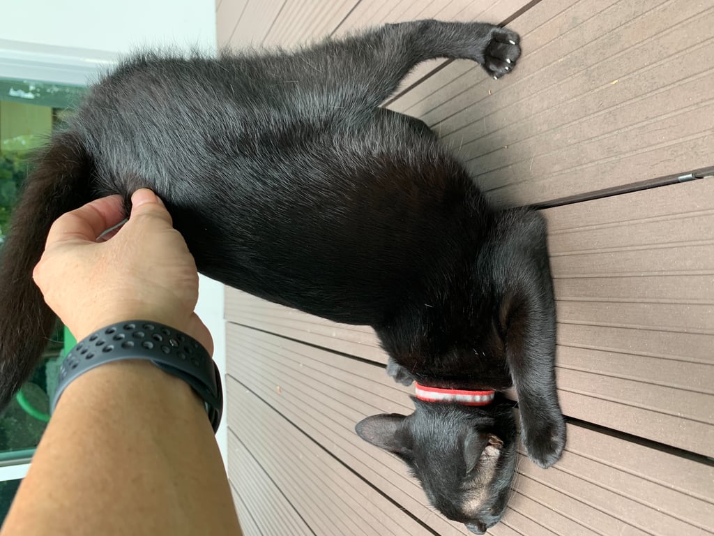 รอยตำหนิ: สวมปลอกคอนิรภัย สะท้อนแสงสีเขียวขี้อ้อน เสียงเล็กๆ ชอบให้เกาที่โคนหางแล้วจะโก่งก้นสูงหน้าติดพื้น