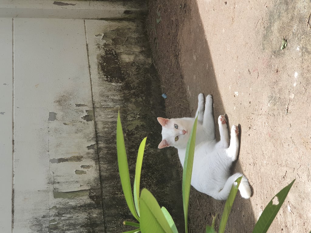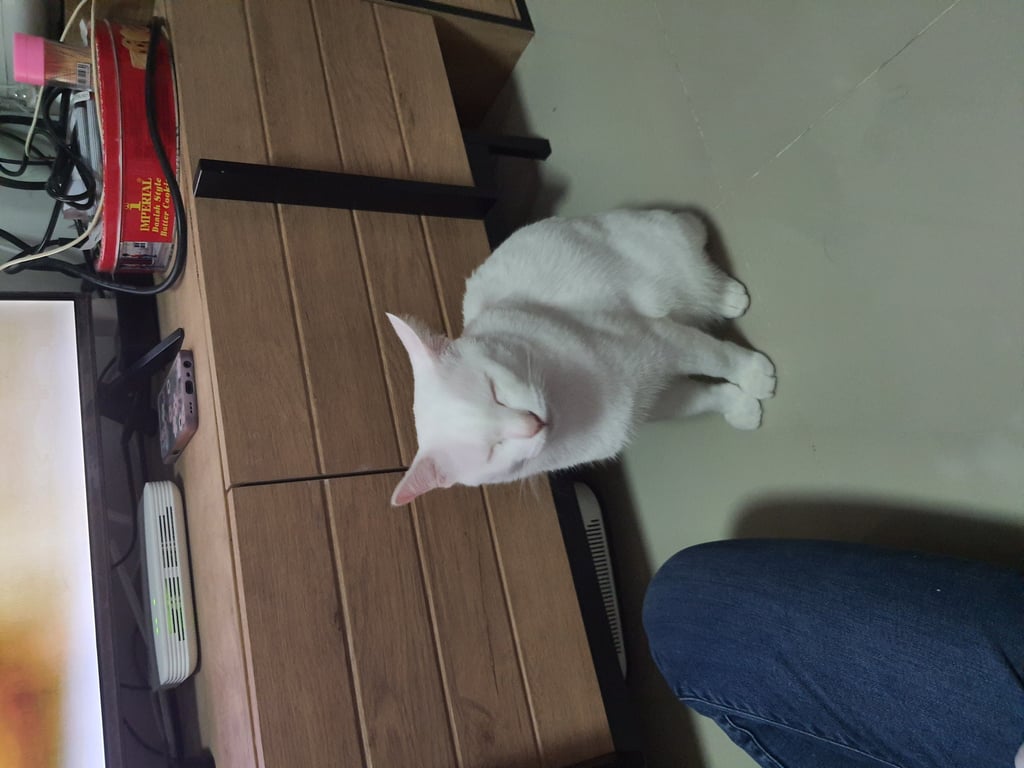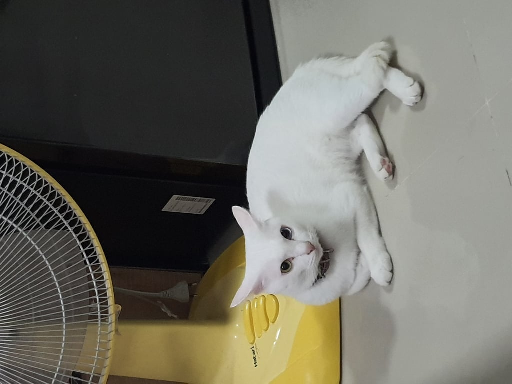 รอยตำหนิ: ตาสองสีน้องแมวตัวสีขาวค่อนข้างอ้วน ตาสองสี หางน้องจะสีเหลืองๆจากไขมัน