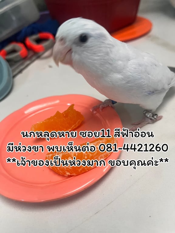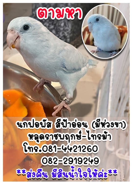 นกฟอพัส สีฟ้าอ่อน มีห่วง2ข้าง นิสัยค่อนข้างเชื่อง ชอบเกาะหัว แต่ไม่ชอบให้จับตัว อาจจะบินหนีได้