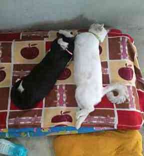 รอยตำหนิ: ตัวน้องสีขาวด่าง จมูกมีสีดำติดอยู่ หางมีลายค่ะ