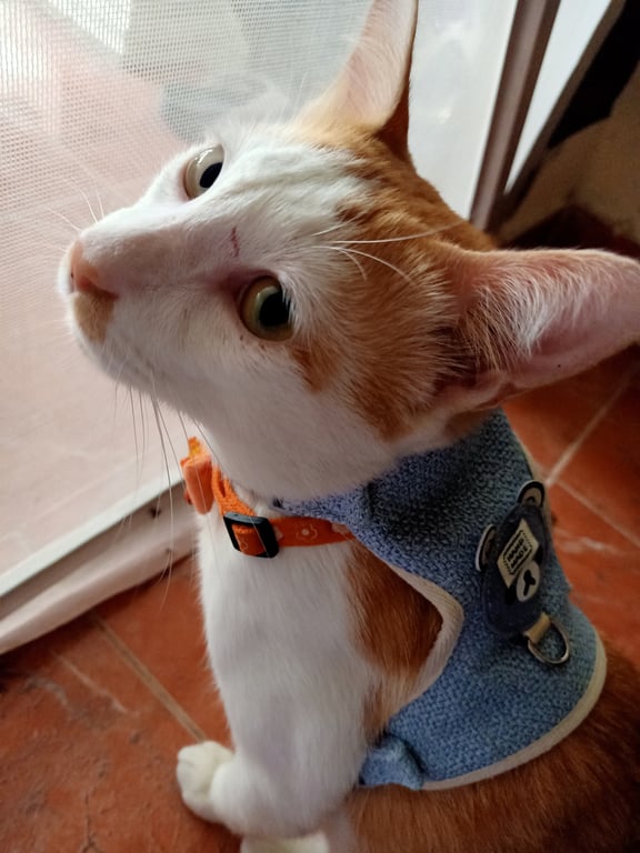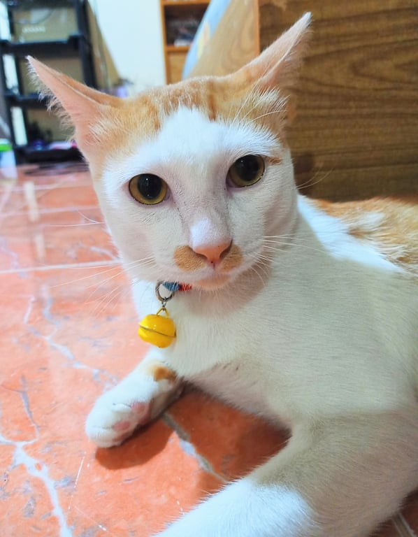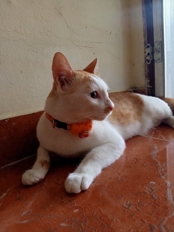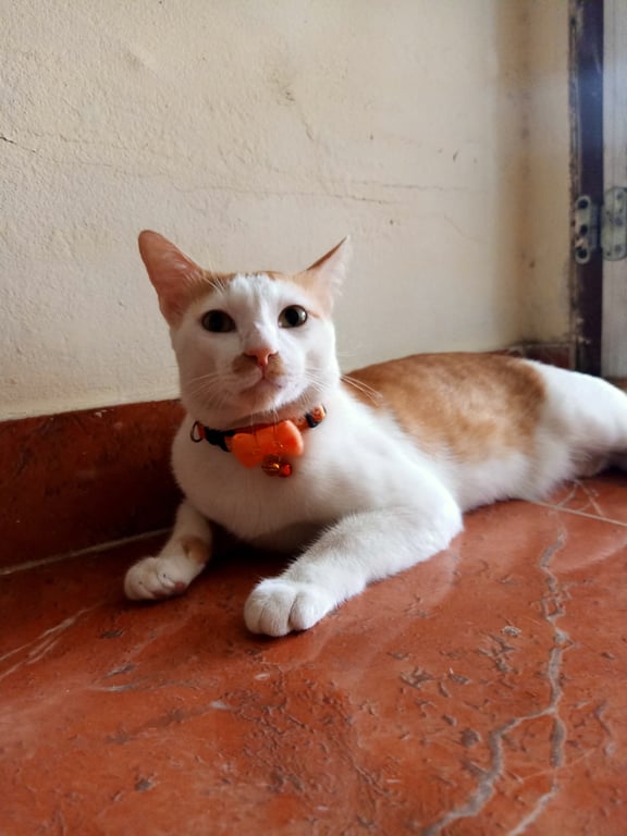 รอยตำหนิ ปอกคอสีส้ม มีรอยแผลข่วนตรงจมูก นิดหน่อย