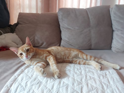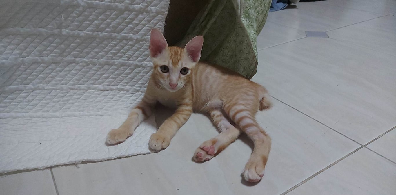 รอยตำหนิ: หางกวัก หน้าขาว สีส้มเห็นลายชัด ปาก เท้า หู สีชมพู จมูกโด่ง1 ปี 1 เดือน
