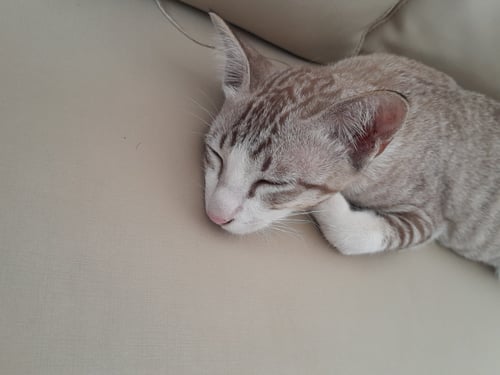 รอยตำหนิ: รูปร่างเรียวน้องจะเป็นแมวลักษณะเรียวหุ่นดีอายุไม่ถึงปีน้องเชื่องขี้อ้อนน้องกลัวสุนัขมากๆตัวค่อนข้างเล็ก