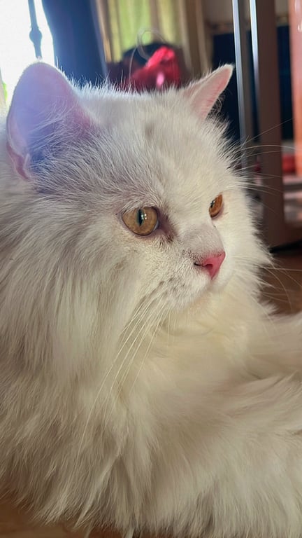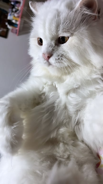 รอยตำหนิ: ขนยาวสีขาวทั้งตัวขี้กลัว ดุกับแมวตัวอื่น
