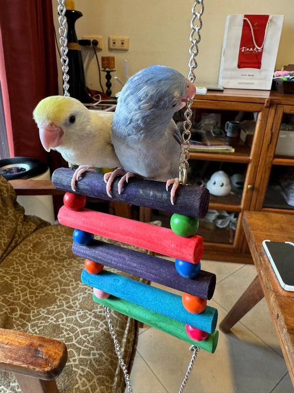 รอยตำหนิ: มีขนสีขาวที่หัวสีฟ้าแทะเก่งค่ะ สีเหลืองตัวเมียกัดเจ็บ
