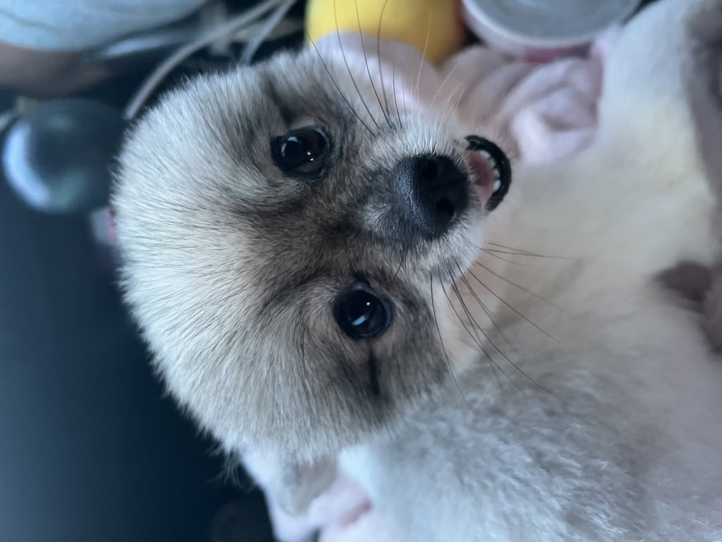 สี: สีขาว ปลายขนสีดำน้ำตาล