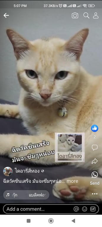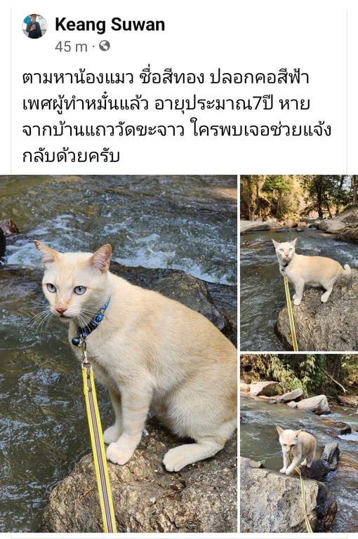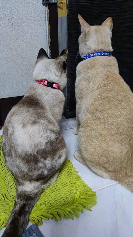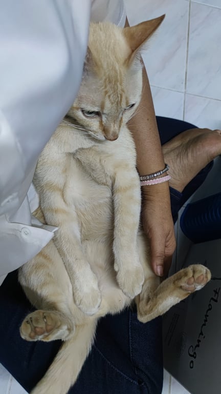 รอยตำหนิ: หางตรง แต่ยาวไม่สุดปลอกคอสีน้ำเงิน กระดิ่งสีชมพู