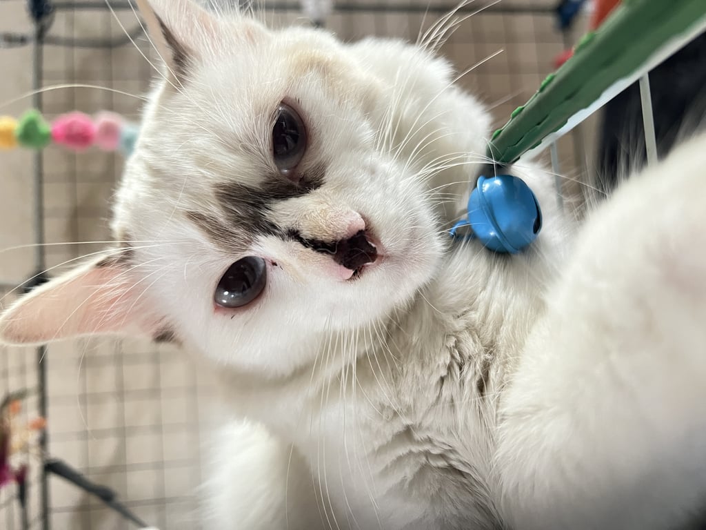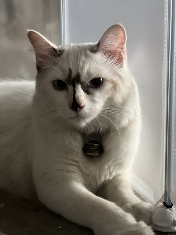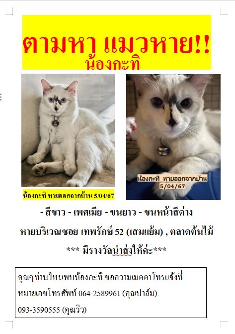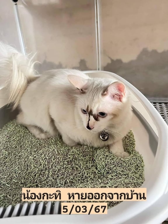 รอยตำหนิ: สีขาว ขนยาว มีขนสีดำแซมที่หน้า จมูกดำ หางฟูๆน้องเป็นเด็กหวงตัว ขี้กลัว ไม่ยอมให้คนจับ กลัวคน ขี้ตกใจ