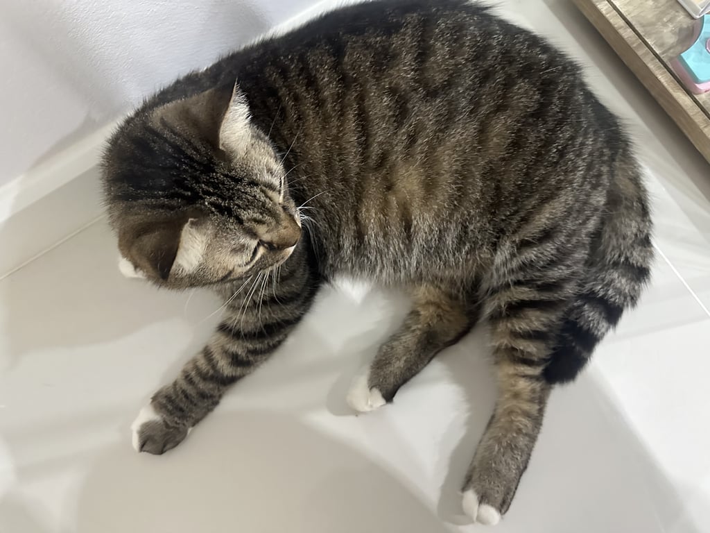 รอยตำหนิ: มีขนแหว่งตรงท้องขี้กลัว ตัวอ้วนๆ ไม่มีปลอกคอ
