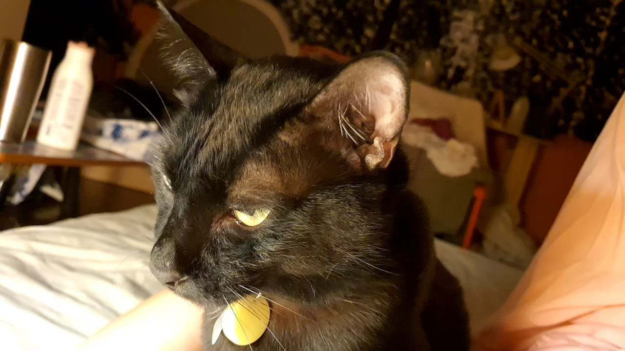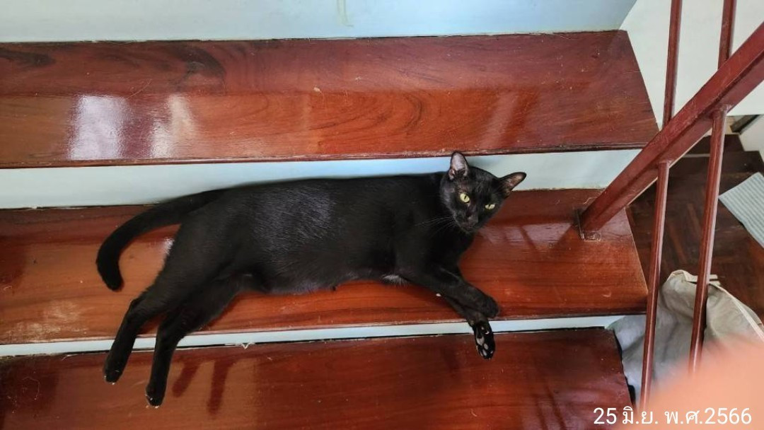 รอยตำหนิ: ที่หน้าอก มีขนสีขาวหย่อมนึง ที่โคนขาพับในของขาหน้าทั้งสองข้างมีหย่อมขนสีขาวแมวตัวนี้ป็นของแม่ผม กลัวคนแปลกหน้า กลัวสุนัข เวลาคนในบ้านเศร้าหรือเสียใจหรือไม่สบายใจ มันจะเดินไปนอนอยู่ชิดกับคนๆนั้น