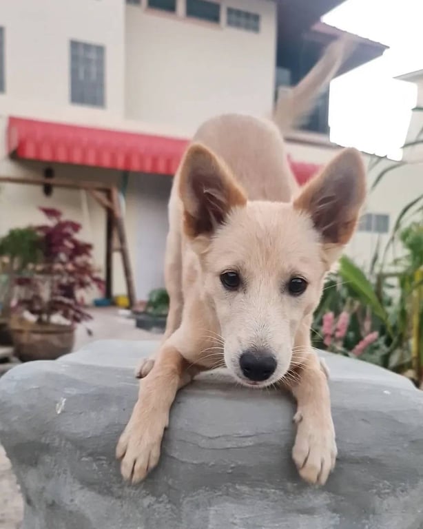 รอยตำหนิ: ขนน้ำตาล หน้าขาวๆหน่อย หูตั้งน้องโดนหมาใหญ่ไล่