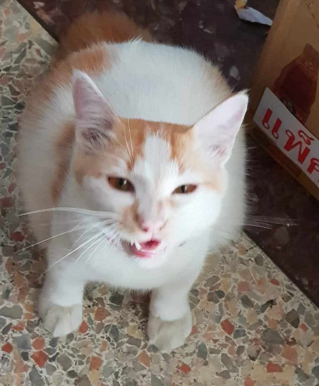 รอยตำหนิ: หางกุด ปลอกคอมีชื่อ ตังเม และเบอร์โทรเชื่องมาก ไม่ดู กินเก่ง ขี้อ้อน หางกุด