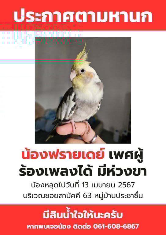 รอยตำหนิ: มีไฮไลท์สีดำที่หงอน มีห่วงขาด้านซ้ายขยันร้องเพลง ขี้อ้อนเฉพาะคนที่สนิท