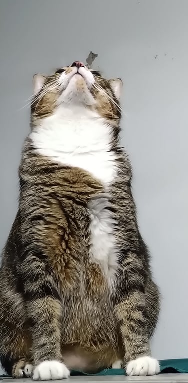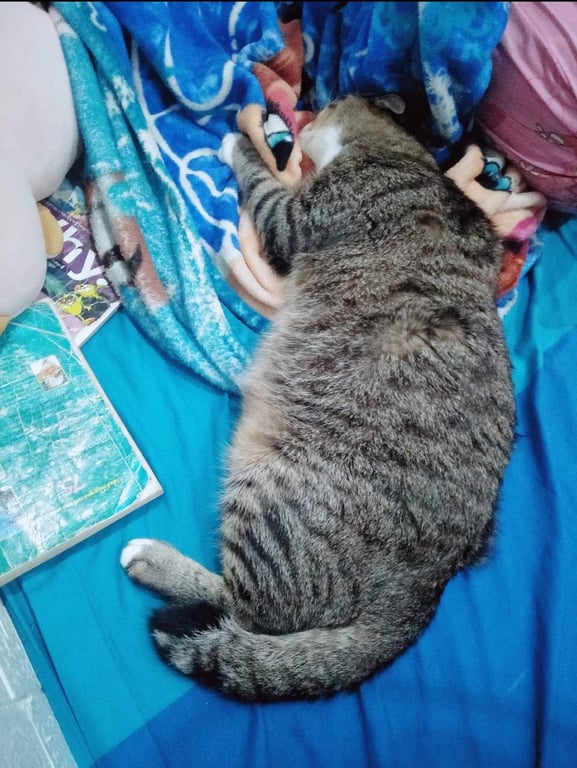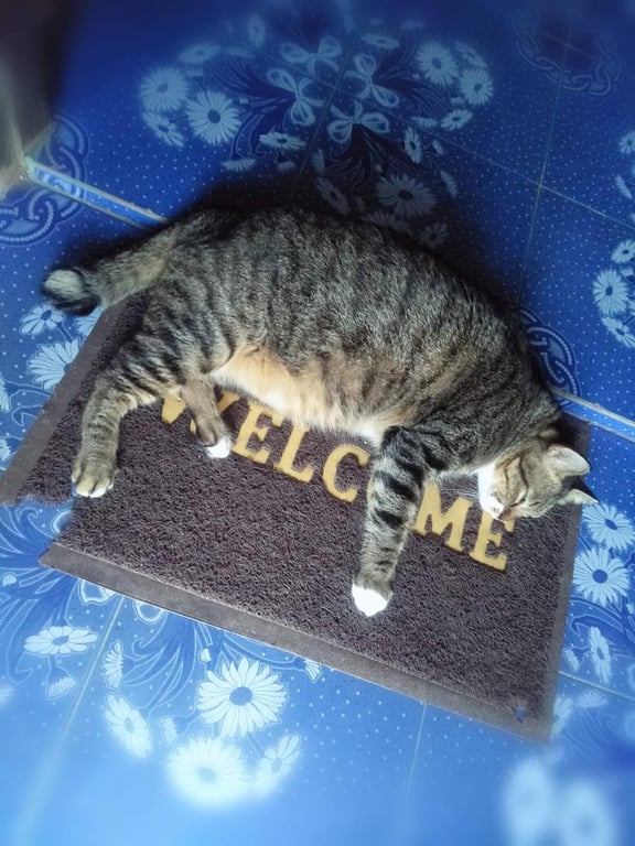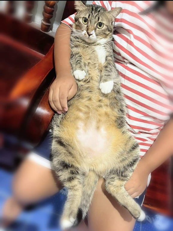รอยตำหนิ: หางกุด ใต้คอสีขาว บริเวณท้องไม่มีขนเป็นแมวอ้วน ชอบอ้อนให้เหยียบหลัง เกาหลัง เกาท้องให้ เป็นแมวขี้บ่น แต่กลัวคนแปลกหน้า ไม่ชอบเสียงดัง เป็นแมวติดผ้าเน่า ชอบดูดผ้า