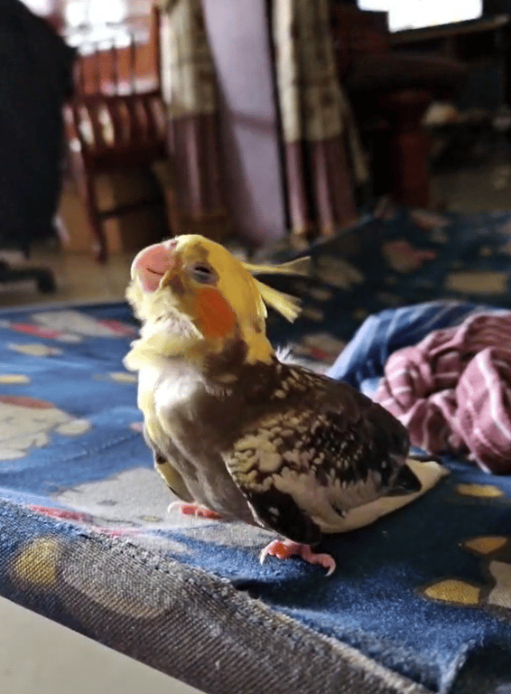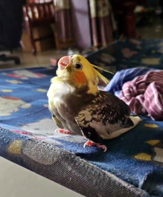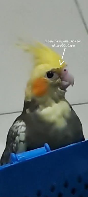 รอยตำหนิ: น้องมีห่วงระบุเลขที่ขาค่ะ น้องมีขนสีดำๆตรงๆเส้นใกล้บริเวณตาสองข้างน้องคล้ายๆคิ้วตรงๆด้วยค่ะเหมือนนกทำหน้างงๆหรือโกรธน้องเป็นนกเด็กค่ะขนพึ่งเต็มตัวพึ่งหัดบินได้ไม่นาน น้องเกาะมือนิ้วไม่ค่อยอยู่ค่ะน้องกินอาหารเม็ดๆยังไม่เก่งน้องยังกินข้าวนกแบบต้มๆใช้หลอดป้อนอยู่ค่ะ น้องจะเป็นนกมึนๆขี้กลัวไม่ค่อยกล้ากระโดนจอดเกาะอะไรก็ยังไม่แม่นเลยค่ะ และน้องขี้อ้อนติดคนมากๆถ้าใครเจอโอ๋ๆน้องลูบๆหัวลูบๆตัวเบาๆเกาๆคอน้องหน่อยนะคะฮือ(;∀; )