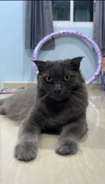 รอยตำหนิ: ขนฟู หนักประมาณ 2-3 กิโลน้องเป็นแมวขี้กลัว เพราะเลี้ยงระบบปิดตลอด ขนฟูๆ สีตาจะออกเหลือง หูจะพับตรงปลายนิดนึง