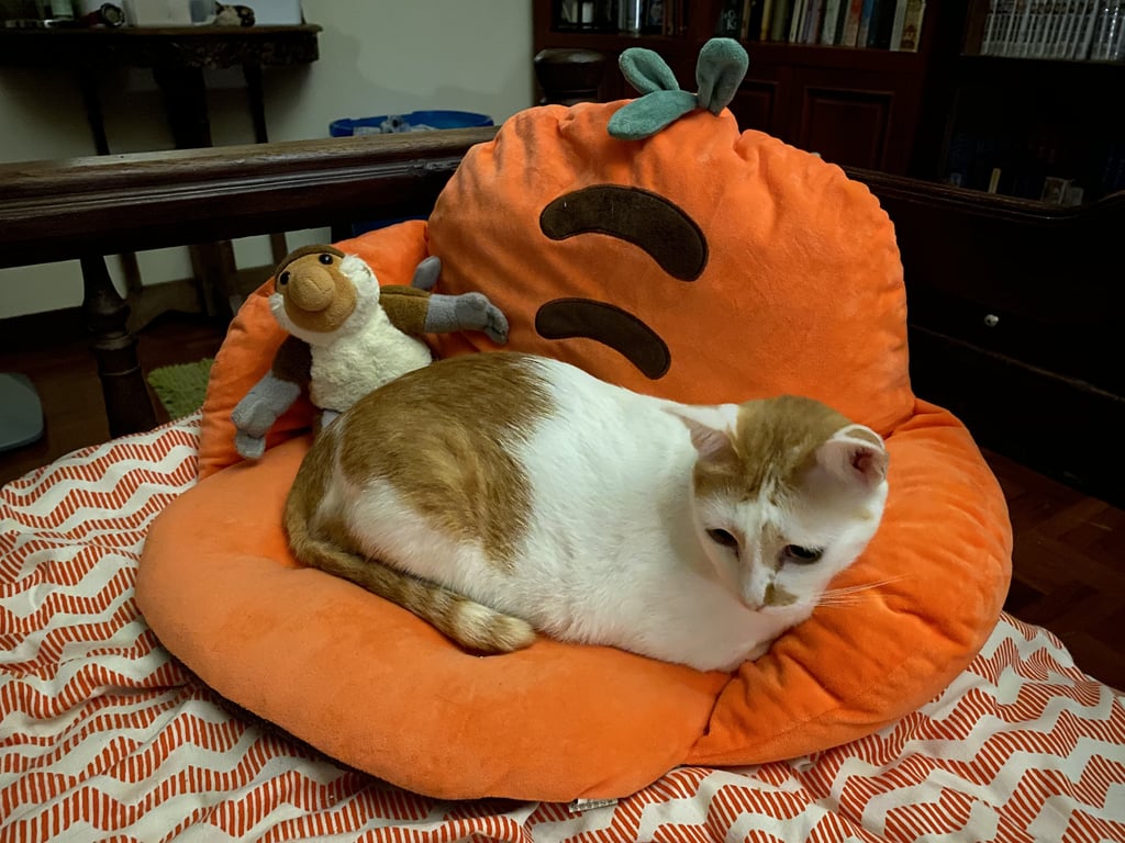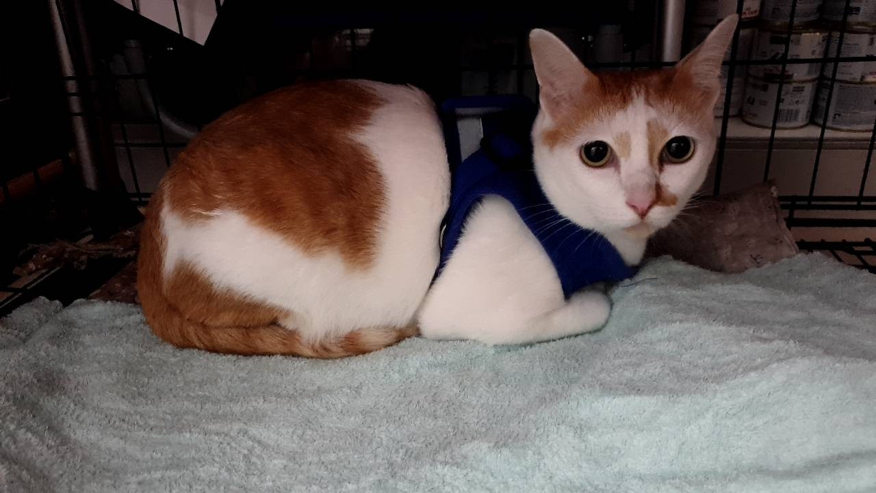 รอยตำหนิ: ปลายหางคด ข้างจมูกซ้ายมีแต้มส้ม