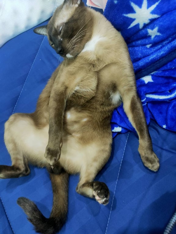 รอยตำหนิ: หางยาง อ้วนนิดหน่อยเข้ากับคนง่าย ชอบให้เกาพุง ขี้อ้อน ขี้สงสัย เป็นมิตรกับทุกคน